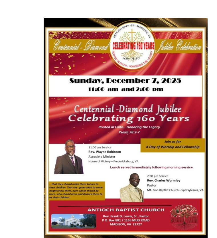 As Rev. Dr. Charles W. Wormley, Rev. Dr. Patricia Wormley, and the entire congregation reflect on this milestone, we celebrate God’s enduring faithfulness and look forward to continuing His work in the community. To God be the glory for 164 years of ministry!